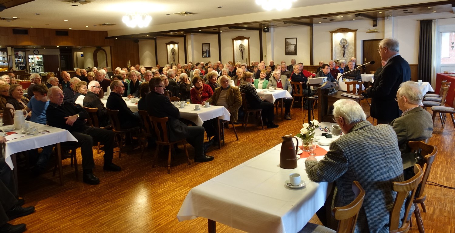 Ein gut gelaunter Kreisvorsitzender Gerd Samuels begrüßte die überaus zahlreichen Mitglieder und Gäste, der Wintereinbruch mit Schneefall am Morgen hatte nur wenige Gäste abgehalten, nach Holtrop zu kommen.