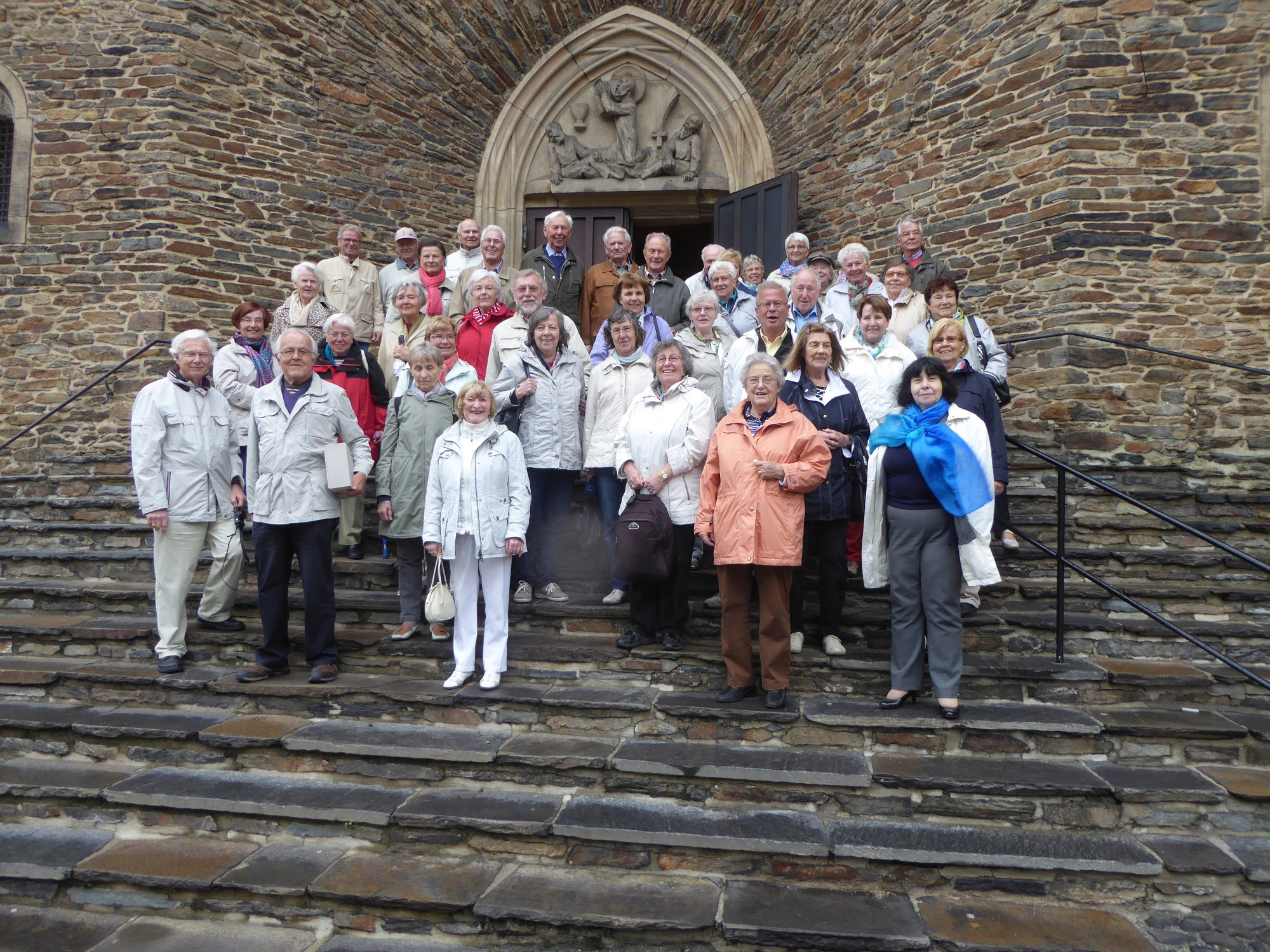 Die SU-Reisegruppe vor der Kirche St. Annen in Annaberg-Buchholz, Foto: Günter HerholzAm späten Nachmittag stand ein geführter Stadtrundgang zum historischen Kern, mit Besuch der Altstadt, des Schlosses und der St. Georgen - Kirche von Schwarzenberg auf dem Programm.