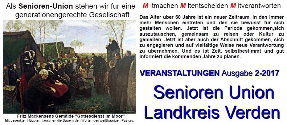 Der Veranstaltungskalender der Kreisvereinigung Verden der Senioren-Union ist in einer WEB-Version online.