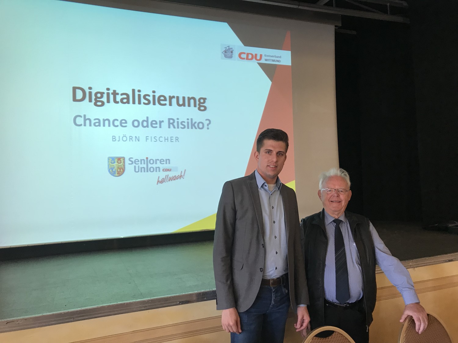 Björn Fischer erklärt die Entstehung der Digitalisierung Über eine Stunde erklärte Björn Fischer den interessierten Zuhörern die Entstehung der Digitalisierung in den letzten 200 Jahren und die damit verbundenen Änderungen in der Arbeitswelt.