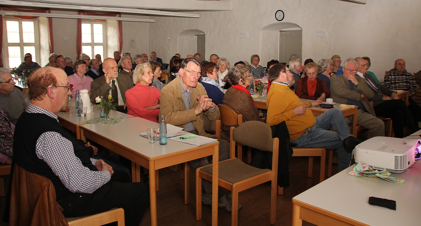 Interessierte Zuhörer bei dem Vortrag von Friedrich-Wilhelm Nauholz. Zum Vergrößern bitte das Bild anklicken. Nach einer Zwangspause mit Ende des 2. Weltkrieges begann von 1946 bis Anfang der 60er Jahre eine zweite Blüte des Erzbergbaus in Salzgitter. Als letztes Bergwerk nahm 1965 Schacht Konrad seinen Gewinnungsbetrieb auf. In den 1960er Jahren kriselte der Bergbau in Salzgitter. Ab 1967 blieben von den vielen Gruben nur Haverlahwiese und Konrad in Betrieb. 1975 stellte Konrad die Förderung ein und in Haverlahwiese verließ am 30.06.1982 der letzte Förderwagen die Grube.