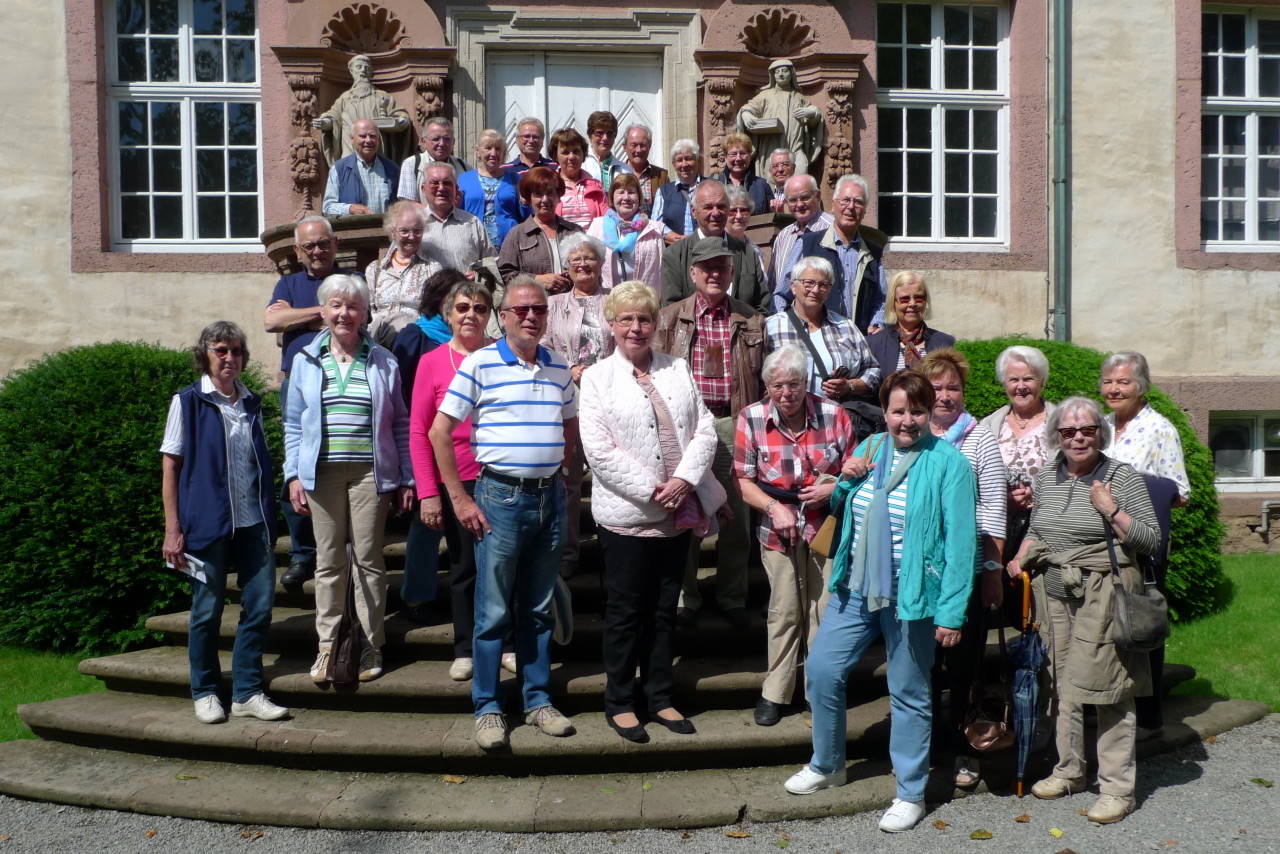 Das Foto zeigt die Reisegruppe vor dem Ostportal von Schloss Corvey. Aufgenommen wurde das Foto von Günter Odenbreit.