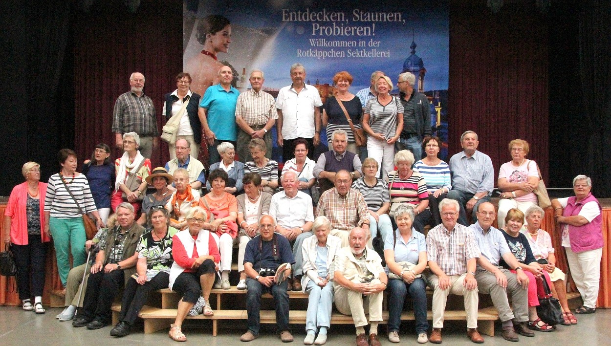 In der Jahn-, Wein- und Sekt-Stadt Freyburg wurde die Wein-und Sekttradition der Saal-Unstrut-Region erkundet. Turnvater Jahn hat die letzten Jahre seines Lebens in Freyburg verbracht und wurde auch dort beerdigt, daran erinnert die Stadt mit dem Beinamen. Während der Weinbau in Freyburg eine tausendjährige Tradition hat, begann die Sektproduktion erst im 19. Jahrhundert. Mit einer Führung durch die Sektkellerei Rotkäppchen ließ sich die Gruppe über die Unternehmensentwicklung und die Produktionsmethoden von 1856 bis heute informieren. An die interessante Führung schloss sich eine „prickelnde“ Verkostung einiger Produkte des Hauses an.
